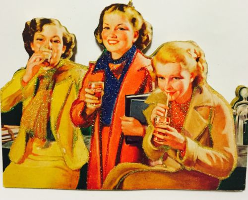 Title (ebay affiliate link): Friends Girls Enjoy Coca Cola Ad Christmas VTG Glittered Ornament Book Image