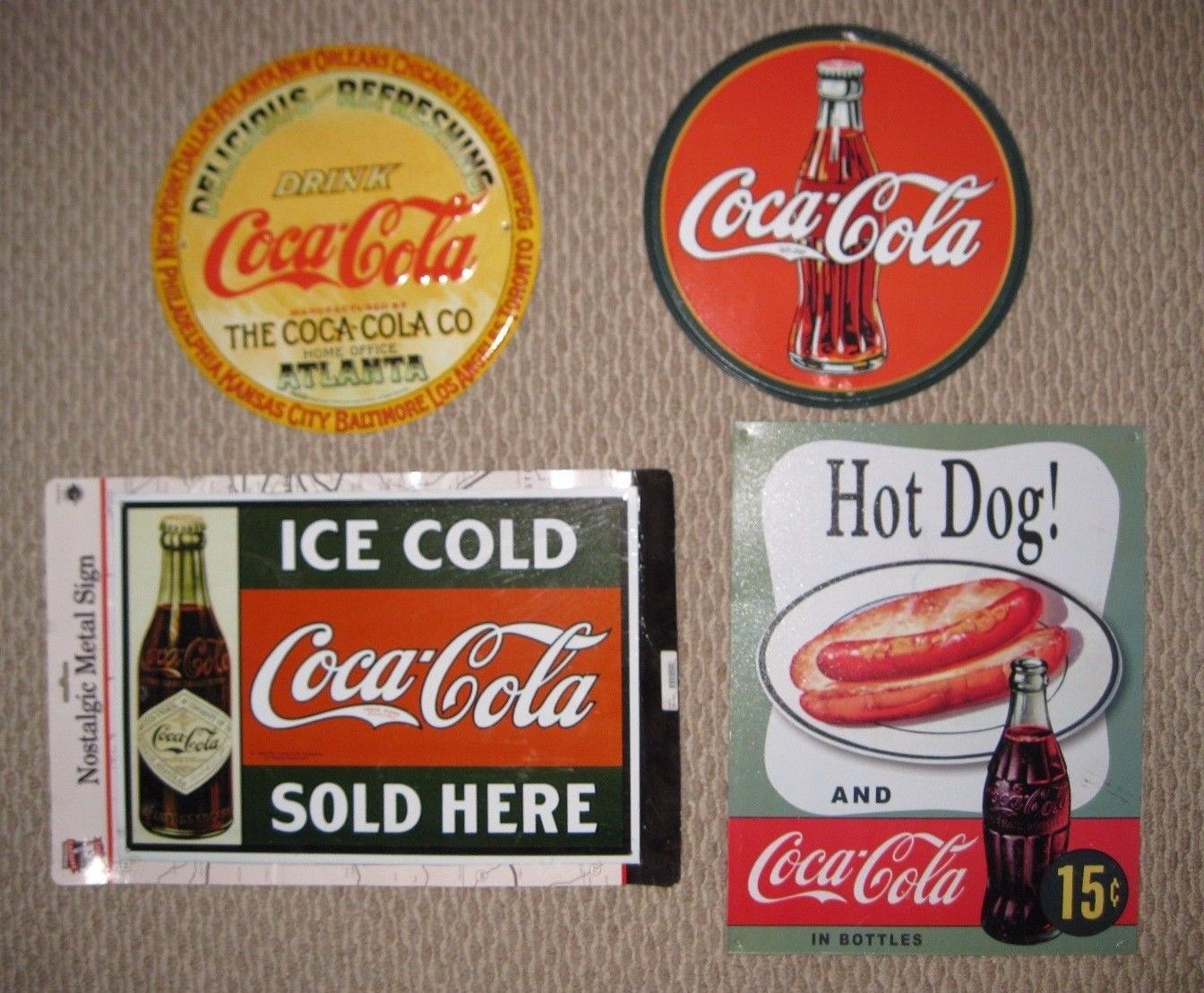 Title (ebay affiliate link): (4) "Coca-Cola" Drink Cold Sold Here Retro/Vintage Style Metal Tin Signs Lot