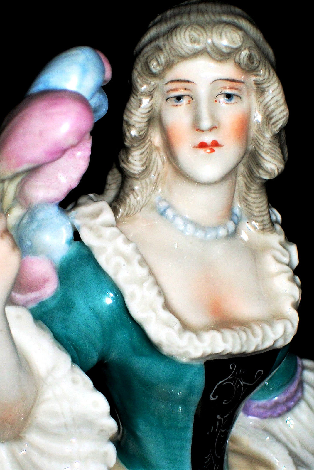 ANTIQUE GERMAN DRESDEN VON SCHIERHOLZ BEAUTIFUL LADY WITH FAN PORCELAIN FIGURINE