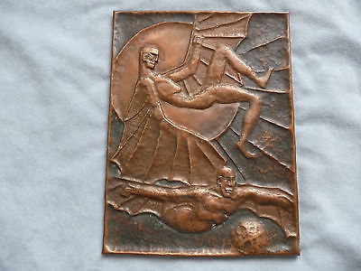 vintage art deco copper hand made hammered relief plaque Daedalus Icarus 1920s