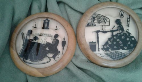 Title (ebay affiliate link): (2) Silhouette Reverse Painting on Glass Round Frames Artist Signed RARE