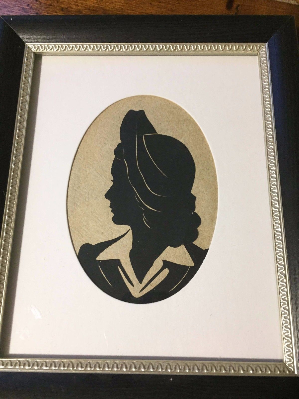 Title (ebay affiliate link): Silhouette of Unknown Woman Circa 1940s - Black Frame Trimmed in Gold
