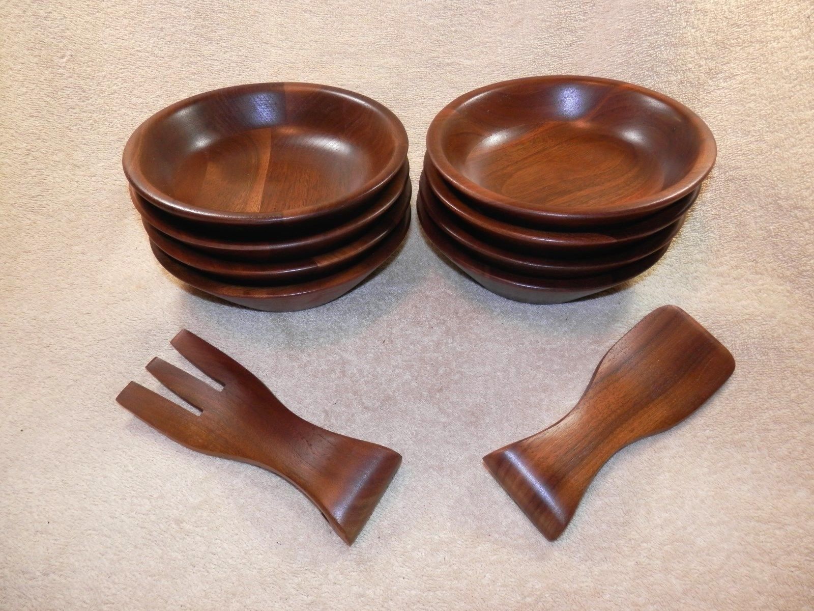 Set of 8 Walnut wood salad / serving bowls