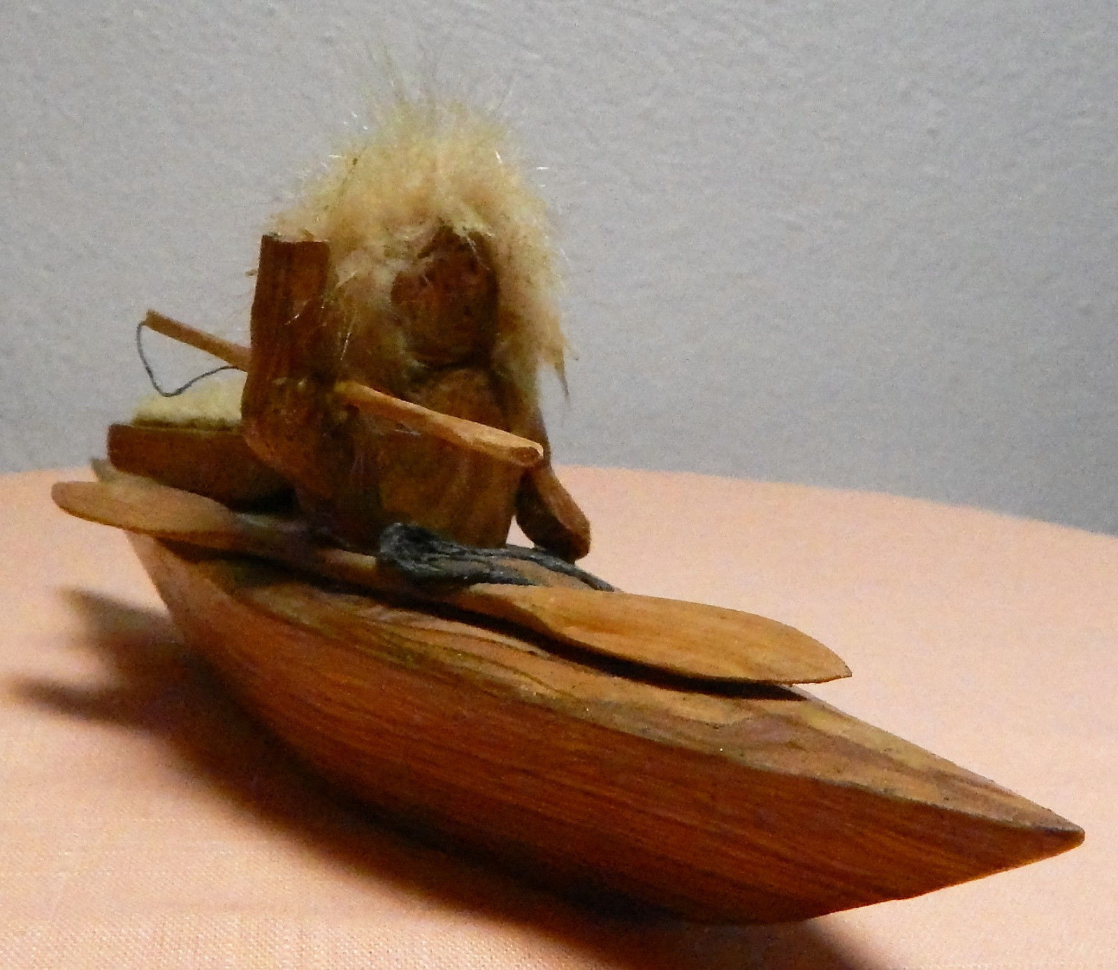 Title (ebay affiliate link): Miniature Wood Kyak Eskimo Spear Fishing - Hand Made Wood Primitive Figure - FS