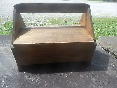 VINTAGE antique WOODEN BOX storage container small handle primitive folk art