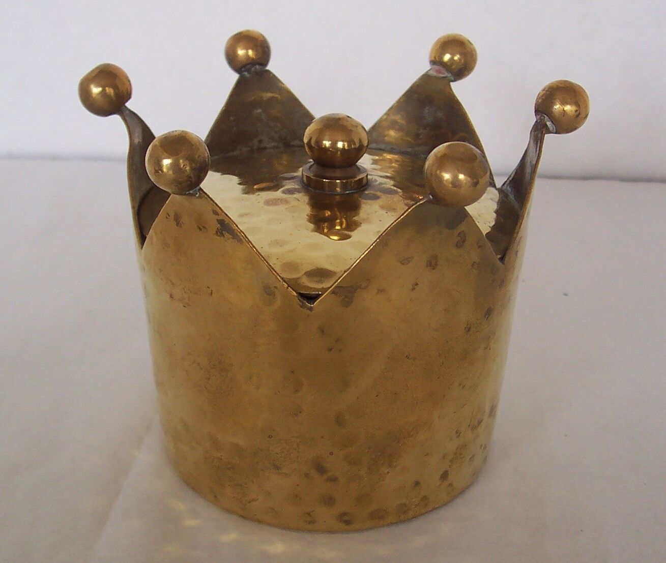 Title (ebay affiliate link): Antique Jester's Cap Tea Caddy Arts Crafts Hammered Brass Box Mission