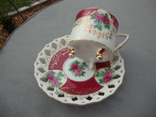 Vintage Bone China Royal Halsey Cup And Saucer Footed Pierced Roses B8