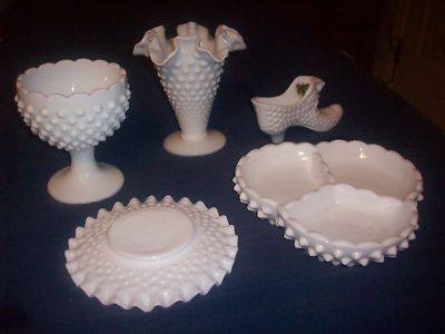 VINTAGE FENTON MILK GLASS HOBNAIL LOT OF 5 VERY NICE