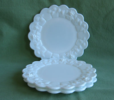 3 Westmoreland Paneled Grape Milk Glass Bread Plates A