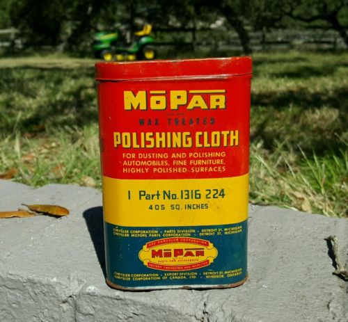 Title (ebay affiliate link): Vintage Mopar wax treated polishing cloth and can