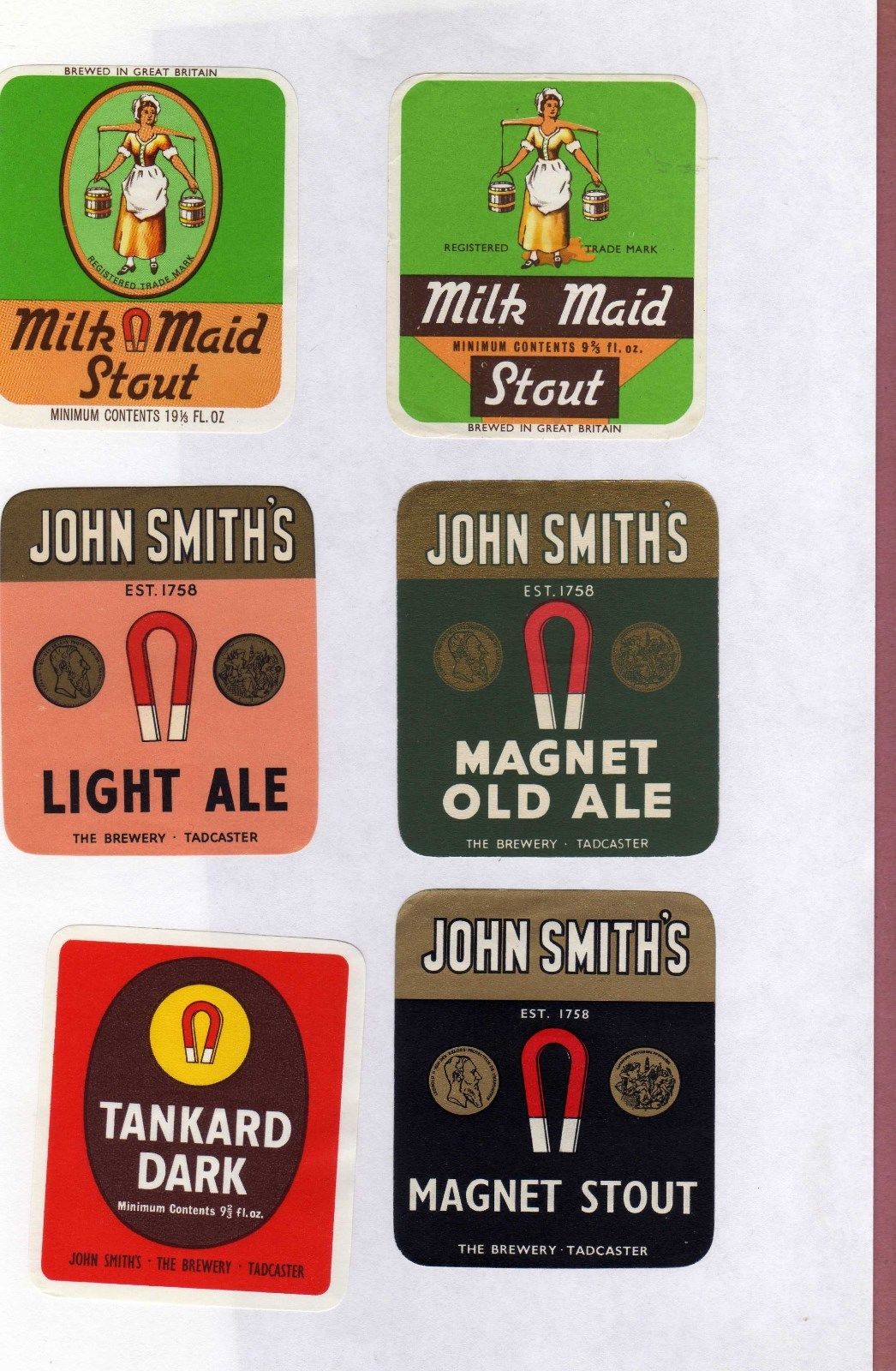 John Smith's Brewery, Tadcaster - 6 old beer labels - please see scan