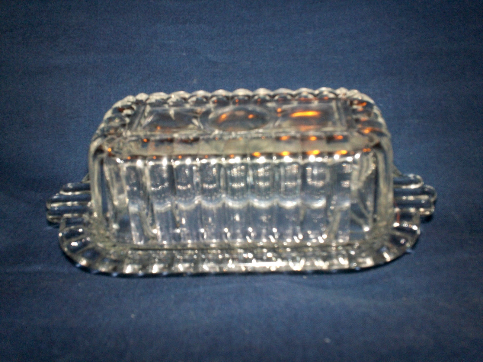 Title (ebay affiliate link): VINTAGE CLEAR RIBBED DEPRESSION GLASS 1/2 STICK COVERED BUTTER DISH TAB HANDLES
