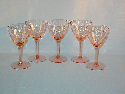 PINK DEPRESSION GLASS OPTIC CORDIAL GLASSES LOT OF 5