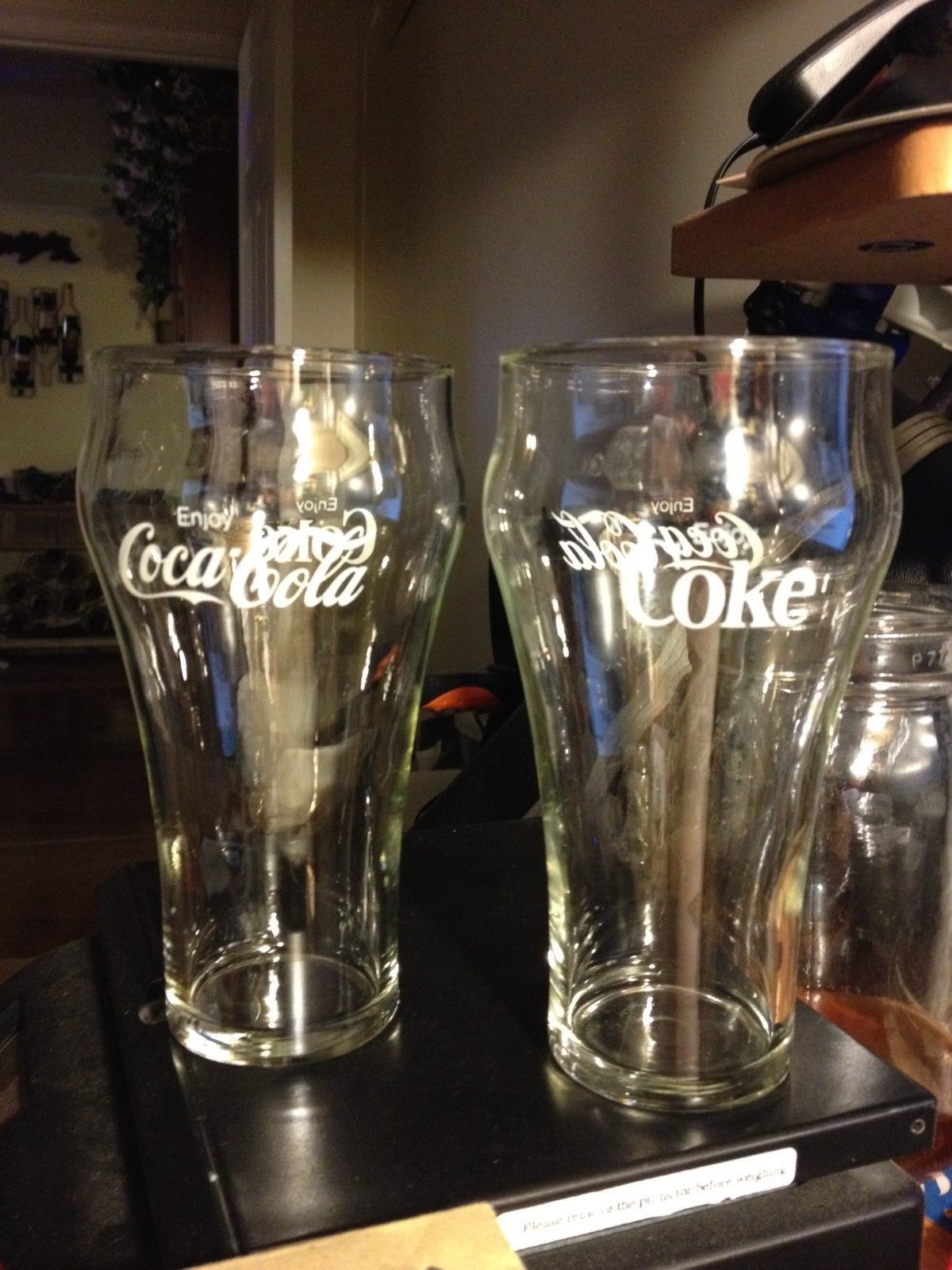 Title (ebay affiliate link): 2 Vintage 16oz Enjoy Coca-Cola Advertising Glasses with White Letters