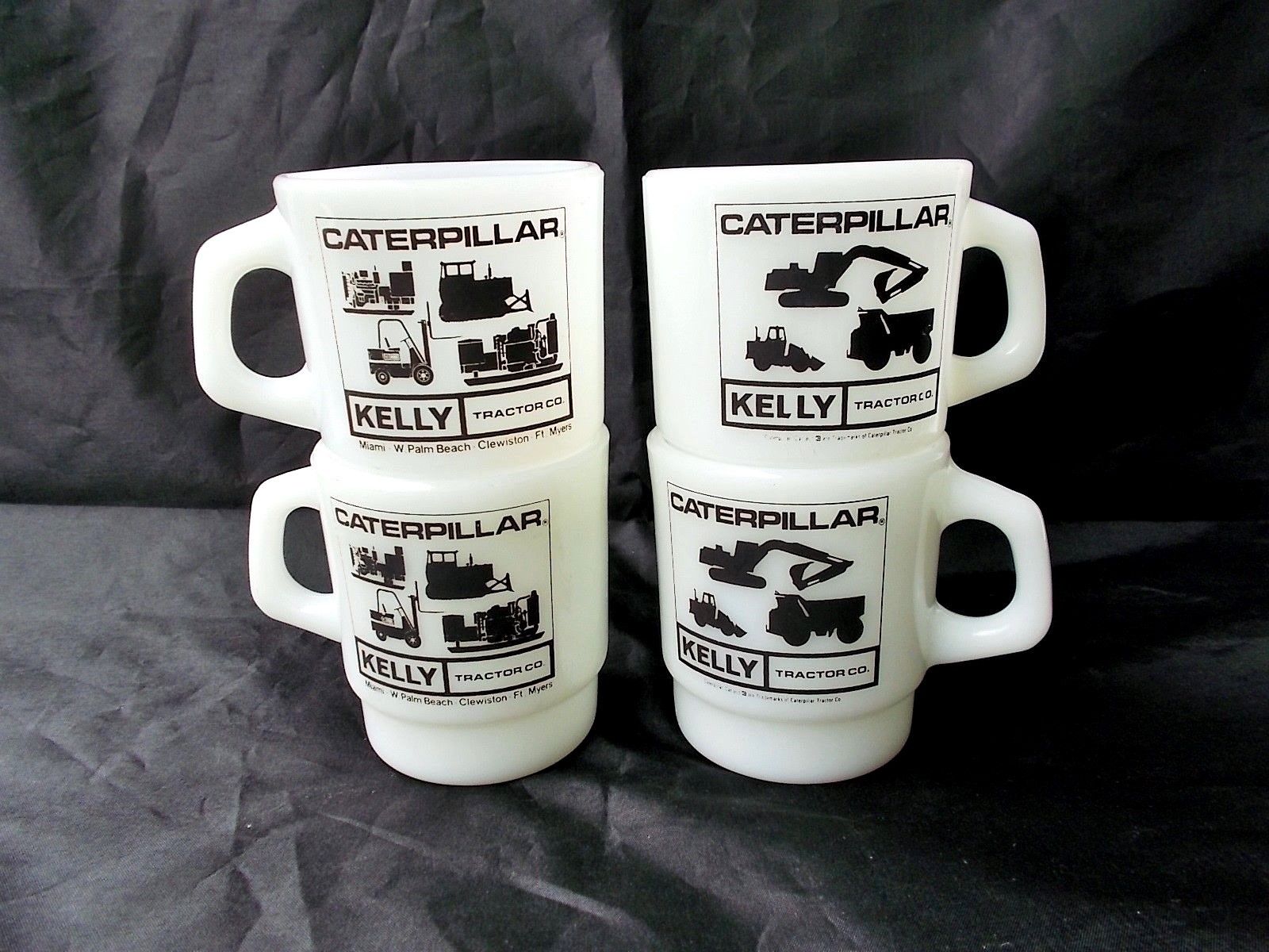 Title (ebay affiliate link): KELLY TRACTOR Co. Cat CATERPILLAR Construction ANCHOR HOCKING Milk Glass MUGS 4