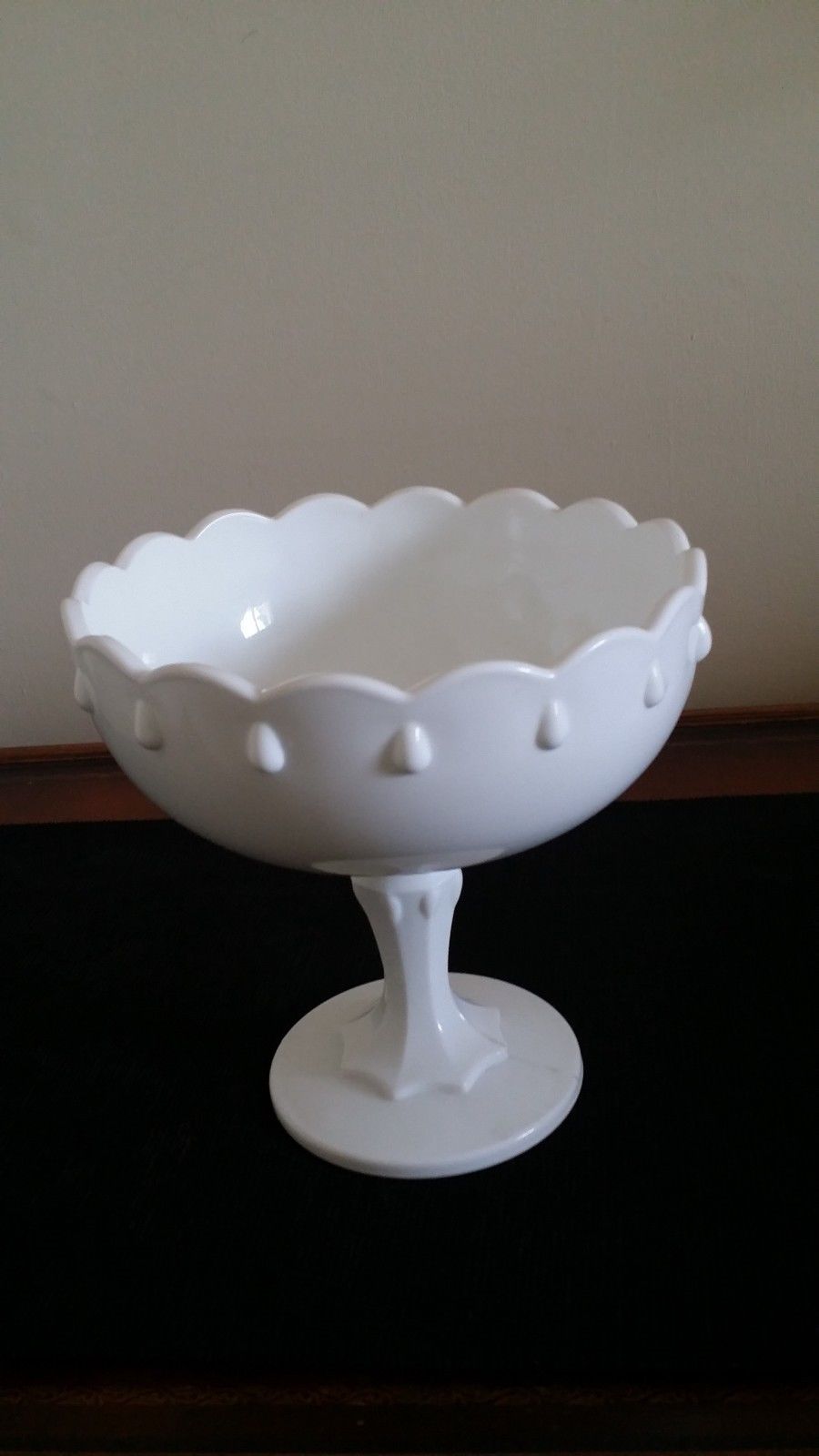Title (ebay affiliate link): VINTAGE PRETTY MILK GLASS PEDESTAL 8" FRUIT COMPOTE DISH TEAR DROP PATTERN