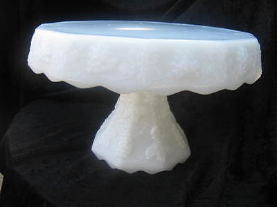 VINTAGE MILK GLASS GRAPE PATTERN CAKE STAND Westmoreland Glass Company MINT