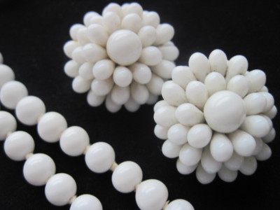 MILK GLASS Long NECKLACE W Germany VINTAGE Earrings