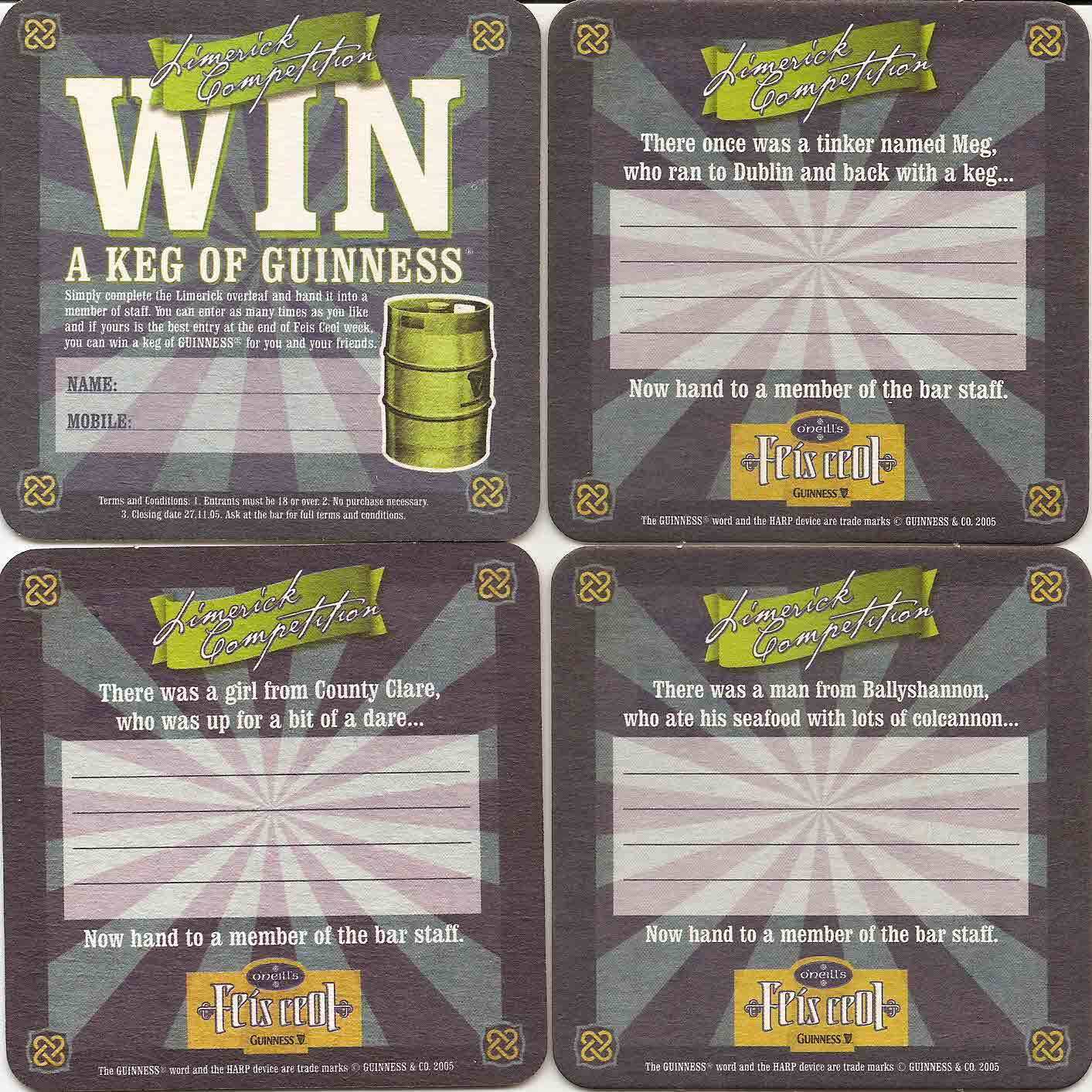 Set of 4 GUINNESS BreweryBeermat/Coasters Limerick Competition