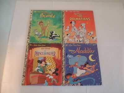 Vintage Disney Little Golden Books Lot of 4 Bambi Aladdin 101 Dalmations + More