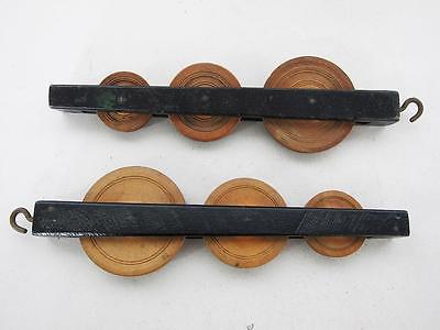 SUPERB ANTIQUE TREEN TURNED BOXWOOD DEMONSTRATION PULLEY WHEEL SET science