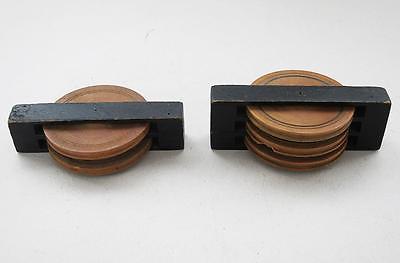 SUPERB ANTIQUE TREEN TURNED BOXWOOD DEMONSTRATION PULLEY WHEEL SET science