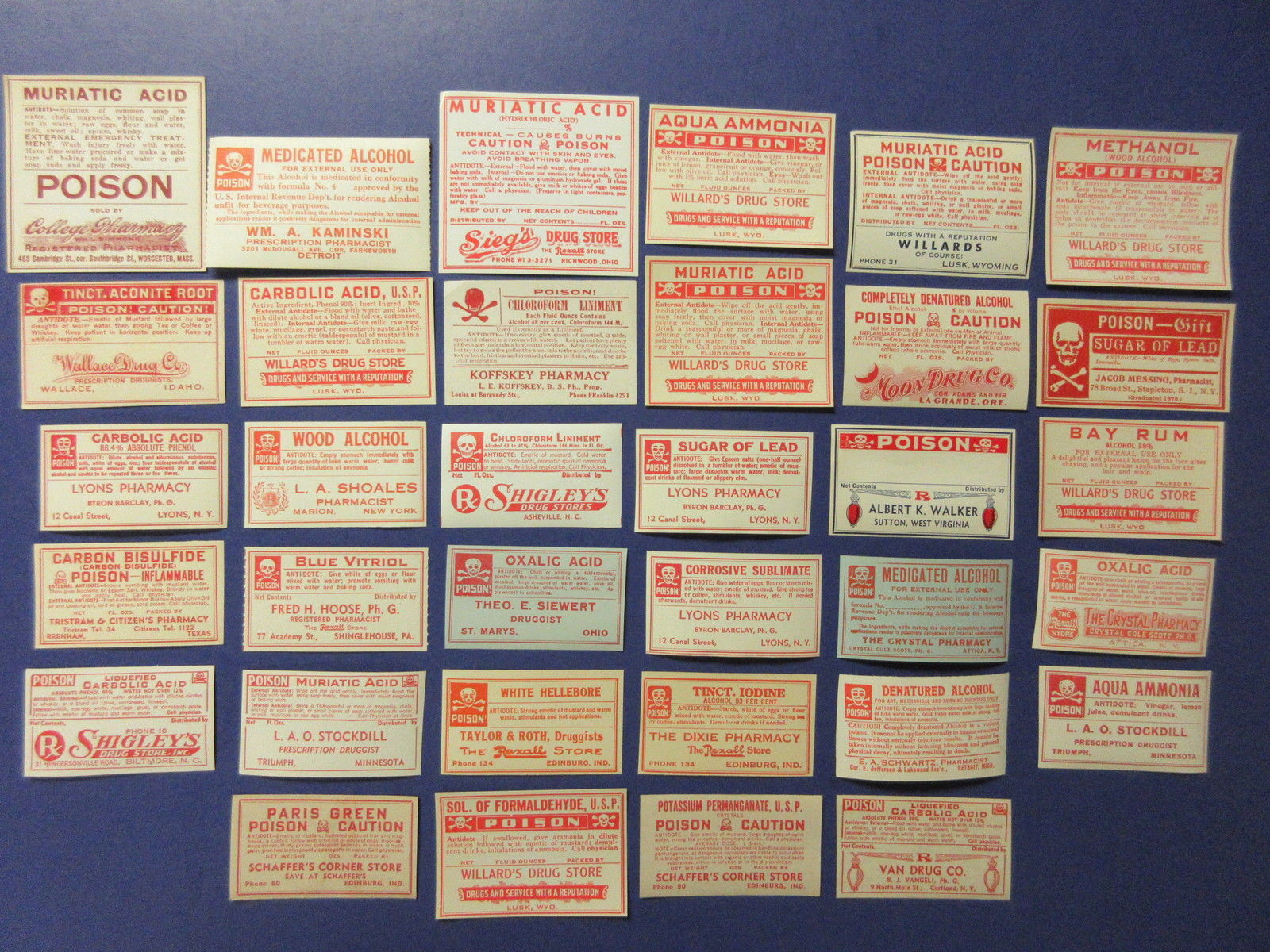Title (ebay affiliate link): 35=OLD ALL POISON PHARMACY APOTHECARY MEDICINE BOTTLE LABELS= NICE