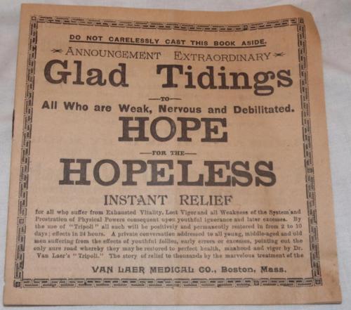 Title (ebay affiliate link): 1800 QUACKERY Booklet Van Laer Medical Co. Boston, Mass.
