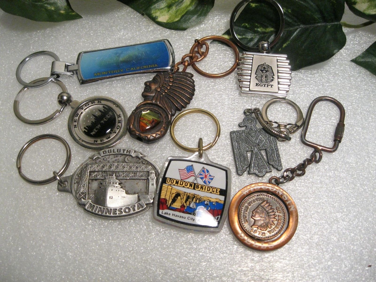 Title (ebay affiliate link): Vintage & Modern Keychain Lot Minnesota Wisconsin New York Egypt California
