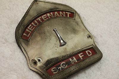Vintage Leather Fire Dept Helmet Front Shield Lieutenant South Chicago Heights
