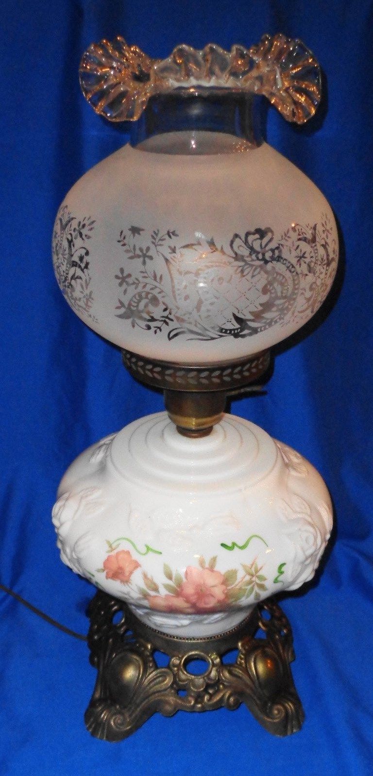 Title (ebay affiliate link): Fabulous Vintage 3 Way Table Lamp 21" Tall Brass Base Glass Top Milk Glass Body