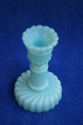 Blue Milk Glass Miniature Candle Stick Swirl Pattern