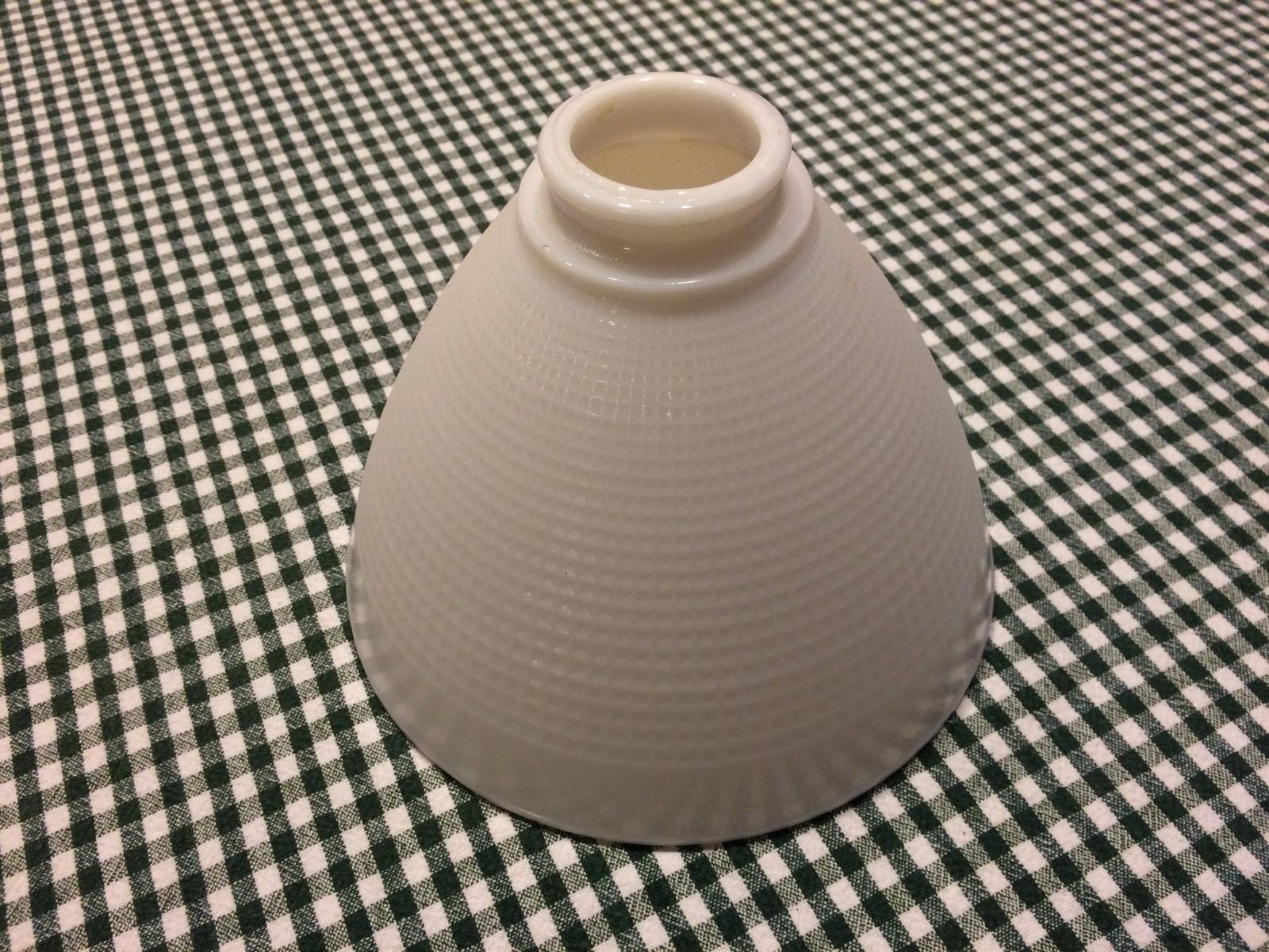 Title (ebay affiliate link): Vtg Corning Milk Glass SHADE GLOBE WAFFLE 8" Torchiere Floor Lamp Diffuser chip