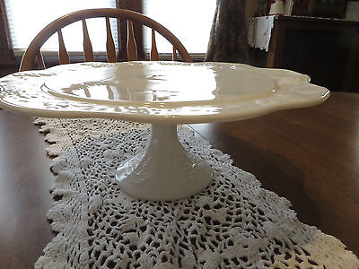 VINTAGE INDIANA HARVEST GRAPE WHITE MILK GLASS 13" CAKE STAND PEDESTAL PLATE