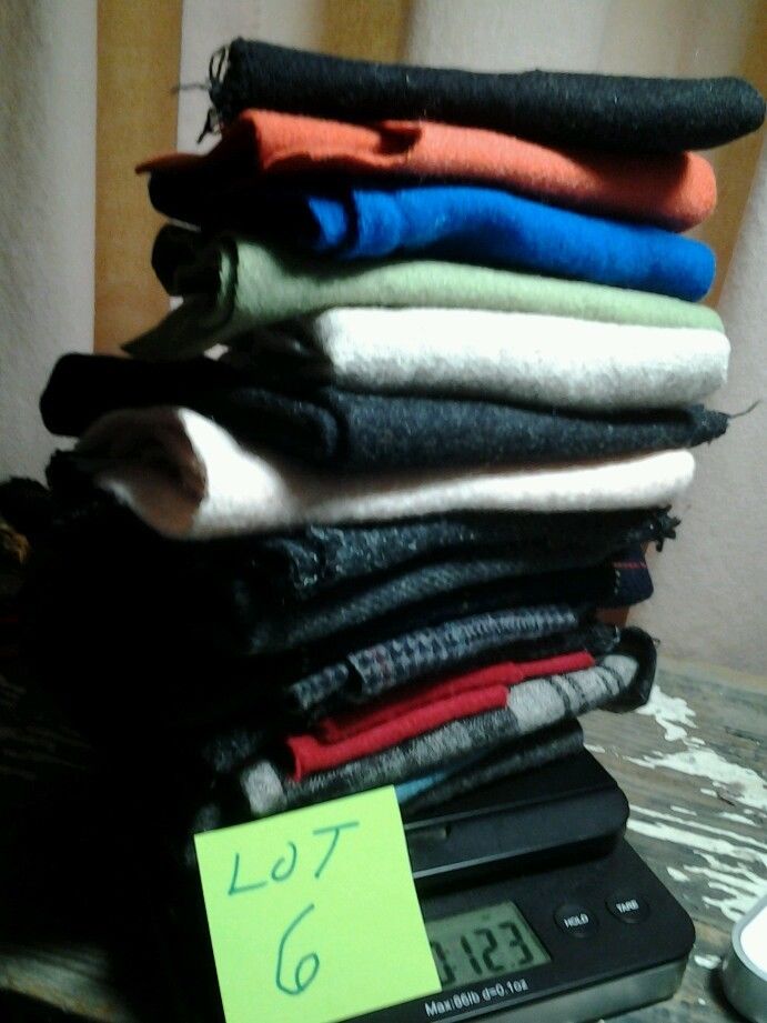 Wool fabric scraps, primitive crafting, dolls, bears,,rugs, decor 12+oz lot6