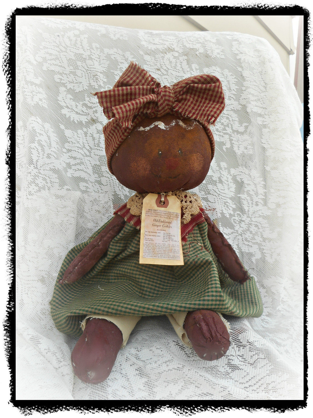 Very Primitive Handmade*Grandma's *Olde Gingerbread Girl Doll*Recipe *OOAK`