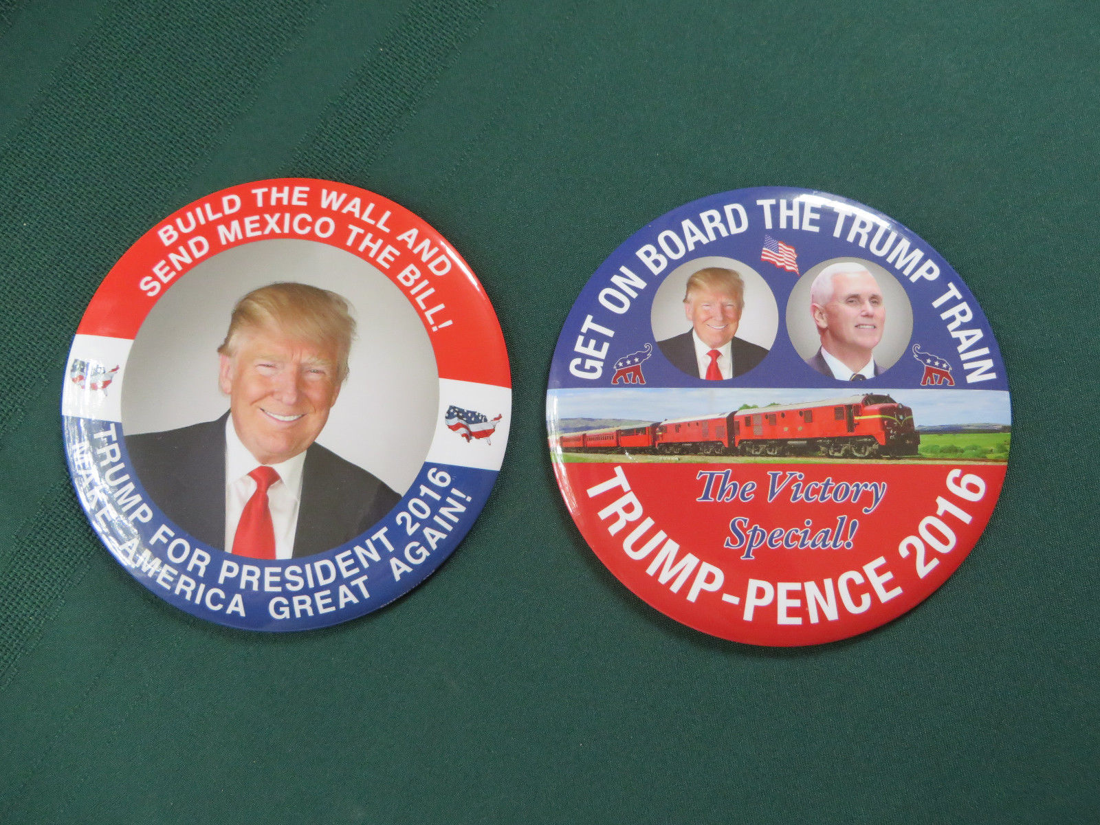 2 Donald Trump 6 inch cello pins were bought at a Trump rally in VA