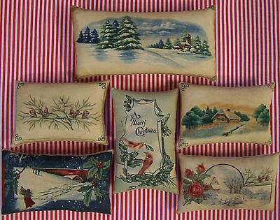 Set of 6 Grungy Primitive Postcard Christmas Ornies Tucks Bowl Fillers Shelf