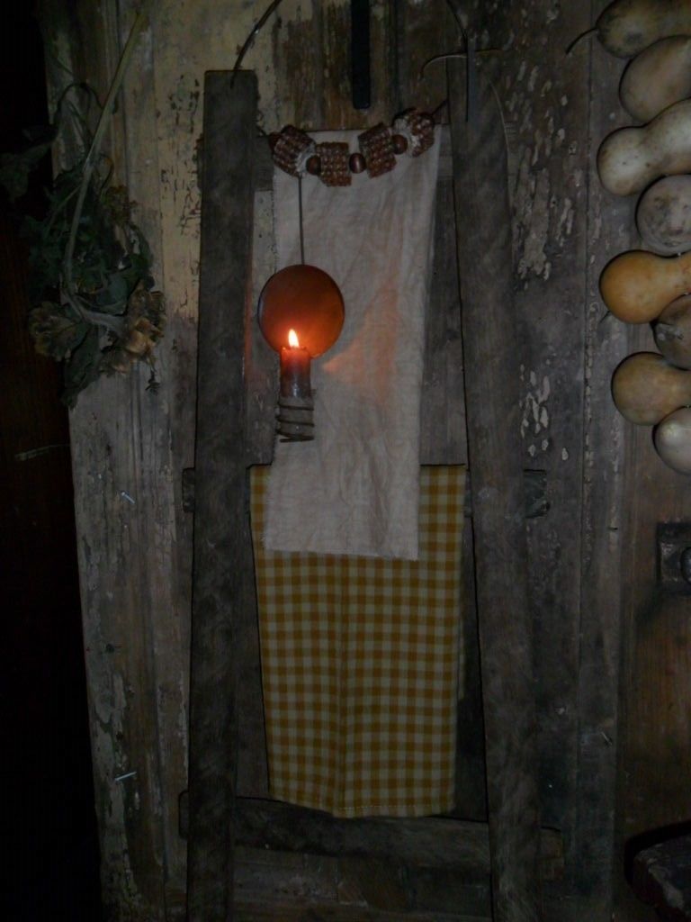 Primitive Ladder Type Rack,Old Tobacco Lath, Reflector Candle,Towels,Cob Garland