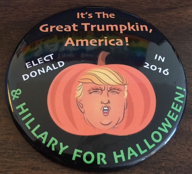 Title (ebay affiliate link): It's The Great Trumpkin/Hillary for Halloween 4" Political Campaign Pin Button