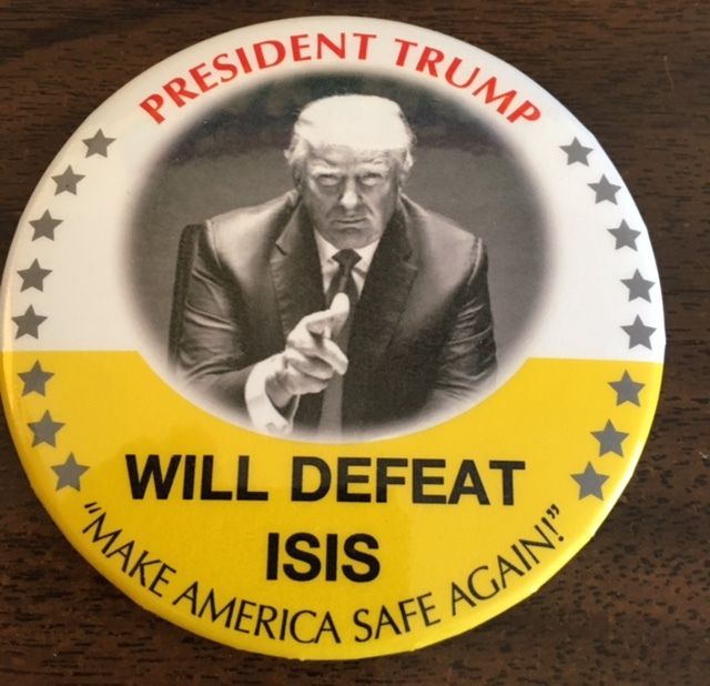 Title (ebay affiliate link): President Trump Will Defeat ISIS 3" Political Campaign Pin Button
