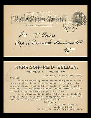 Title (ebay affiliate link): 1892 Advertising Postal Card #UX10- Presidential Election Event-Syracuse NY