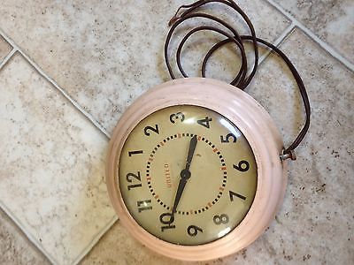 Title (ebay affiliate link): Antique Vintage Wall Clock Pink Art Decco United Self Starting