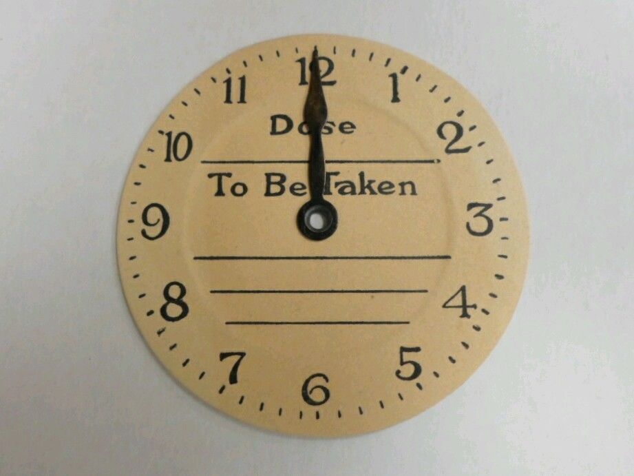 Title (ebay affiliate link): Antique Drug Store Dosage Reminder Paperboard Clock ~ Pharmacy Medicine Doctor