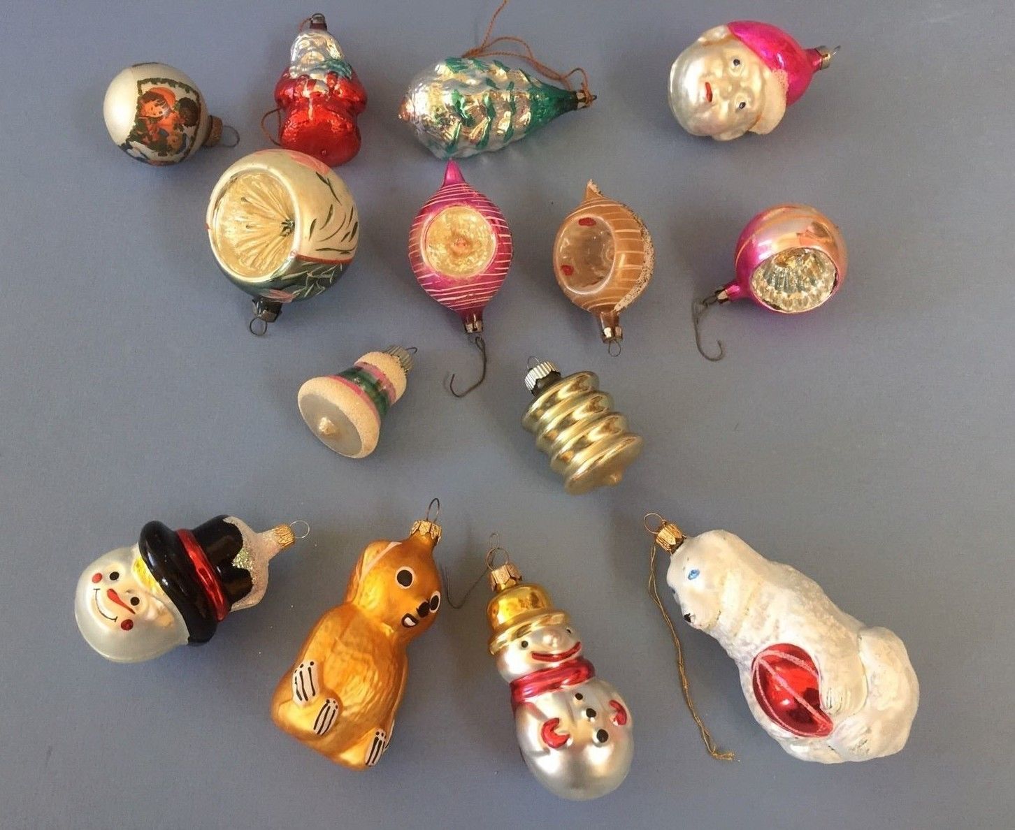 Mixed Lot of 14 Vintage Christmas Ornaments Mercury Glass Indent