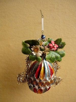 Title (ebay affiliate link): VTG.GLASS BEADED VASE CHRISTMAS TREE ORNAMENT WITH PAPIER FLOWERS