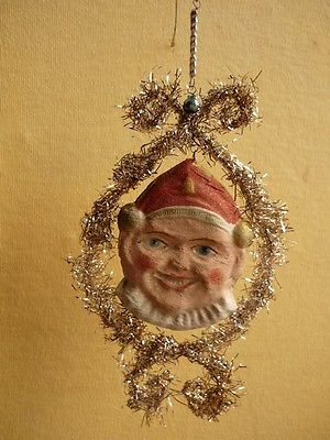 Title (ebay affiliate link): VTG.PAPIER CLOWN CHRISTMAS TREE ORNAMENT IN TINSEL ROUND