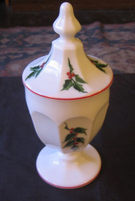 Westmoreland Milk Glass Christmas Holly Candy Jar sign
