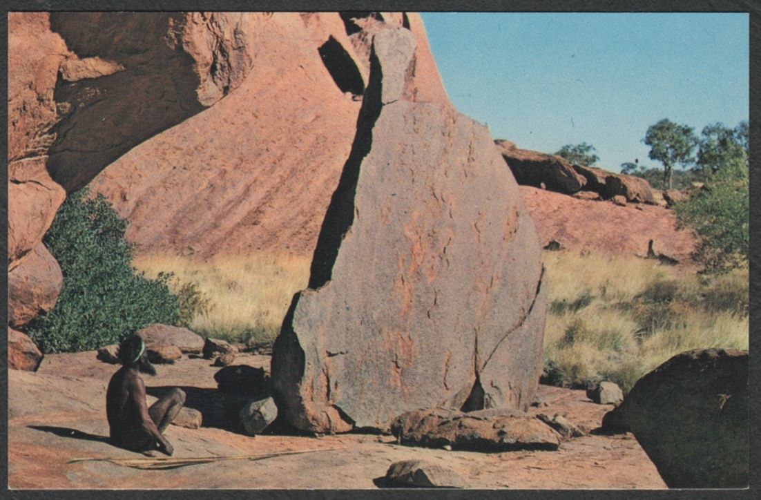 k922) POSTCARD: AUSTRALIAN ABORIGINAL AT AYERS ROCK CENTRAL AUSTRALIA