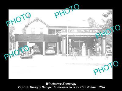 OLD LARGE HISTORIC PHOTO OF WINCHESTER KENTUCKY, BUMPER-BUMPER GAS STATION 1940
